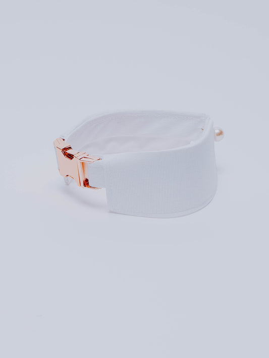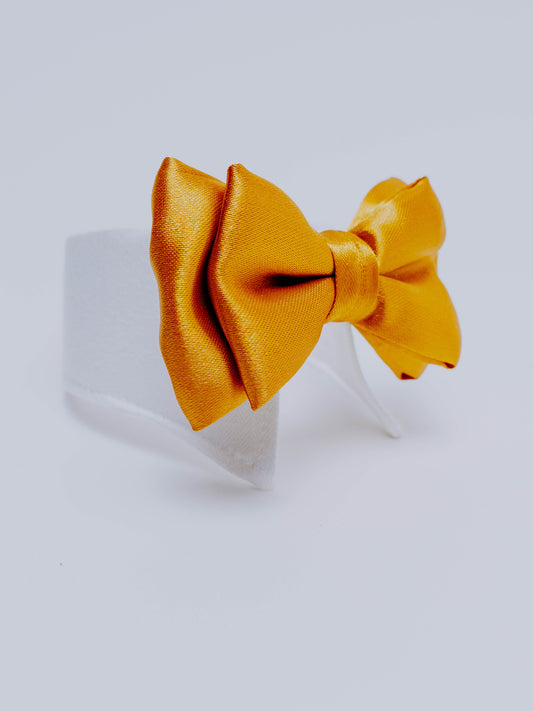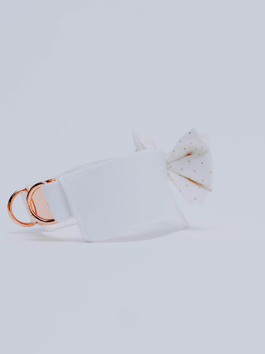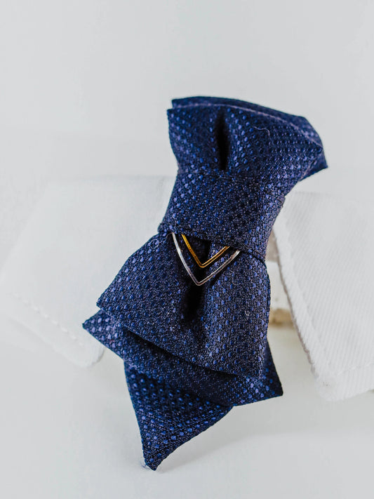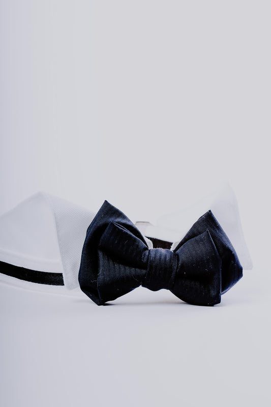 Colletto di camicia damascato bianco con papillon in raso damascato blu
